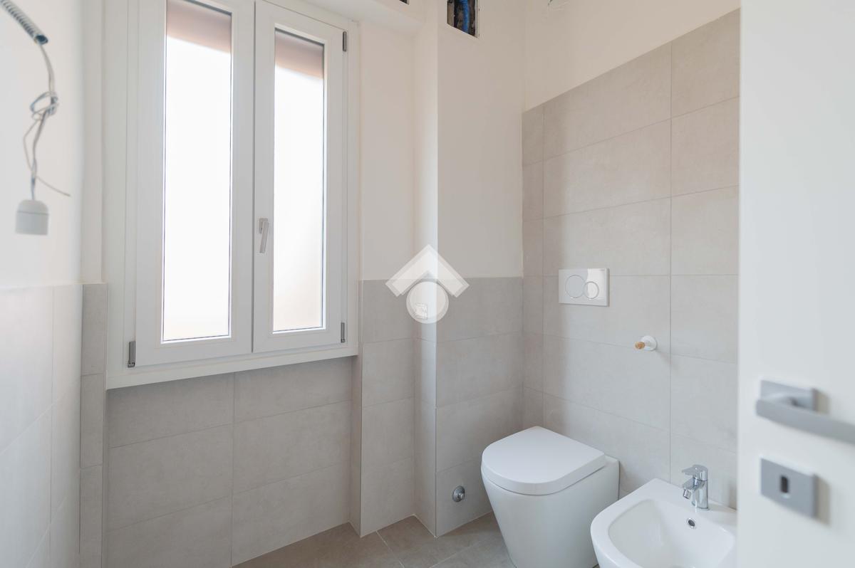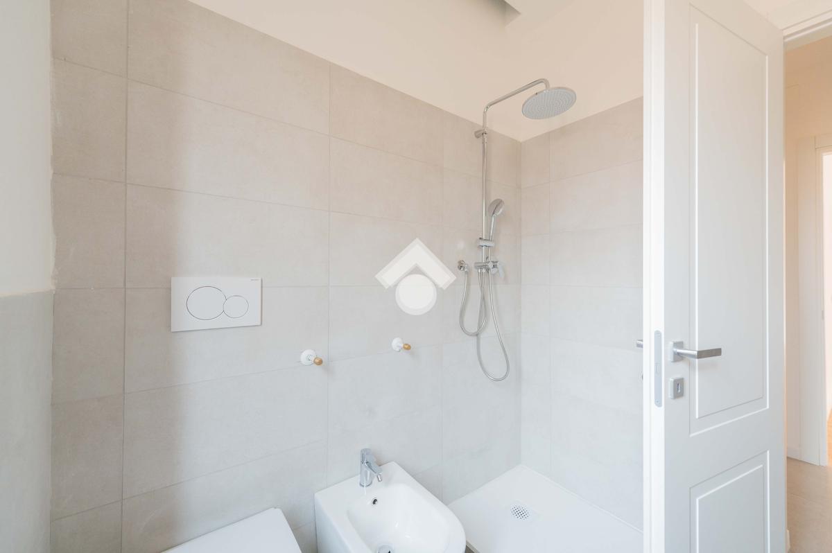 La zona notte è composta da due camere da letto, di cui una con accesso a un ulteriore balcone che garantisce ottima aerazione e luce naturale. La casa dispone di due bagni completi, entrambi rifiniti con sanitari nuovi e box doccia di design.