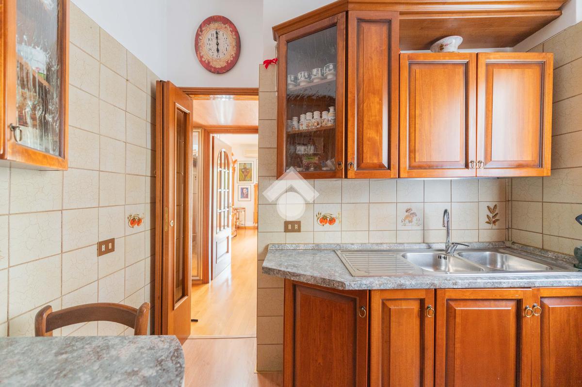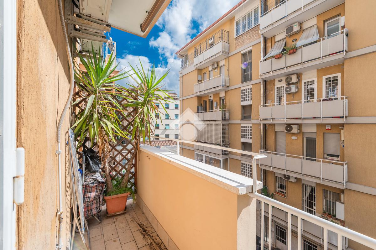 La distribuzione interna prevede ingresso, salone con accesso al balcone, cucina separata abitabile, due camere da letto matrimoniali e un bagno.
